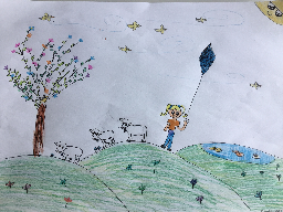 Grasslands were full of flowers and bees and butterflies absorbed their nectar. The small children were happy to play in the ground. The Sun was happy too ,for being able to warm stll this part of the Earth. All around was surrounded by Happiness
