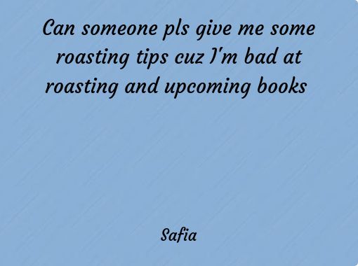 "Can someone pls give me some roasting tips cuz I'm bad at roasting and upcoming books"