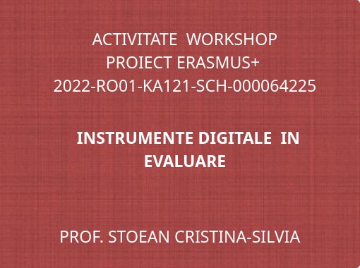 "ACTIVITATE WORKSHOP PROIECT ERASMUS+ 2022-RO01-KA121-SCH-000064225 INSTRUMENTE DIGITALE IN EVALUARE"