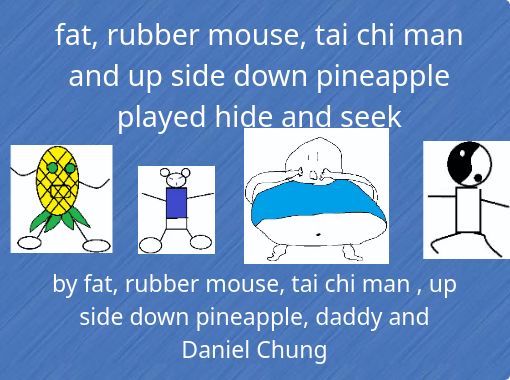 "fat, rubber mouse, tai chi man and up side down pineapple played hide and seek"