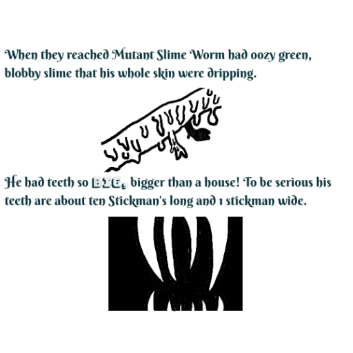 Sticky, a stickman hero, faces a fierce challenge to fight Mutant Slime Worm. He is swallowed but escapes and defeats the monster. Sticky and his friend deal with a baby mutant. The story ends with a cliffhanger.