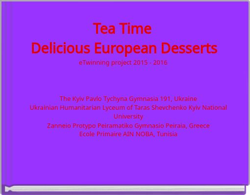 Students from Kyiv Pavlo Tychyna Gymnasia 191 in Ukraine share their favorite recipes for blueberry cake, pancakes, muffins, cheesecake, brownies, chocolate chip cookies, cupcakes, and mini cheesecakes. The recipes are written in English and cover a variety of desserts.
