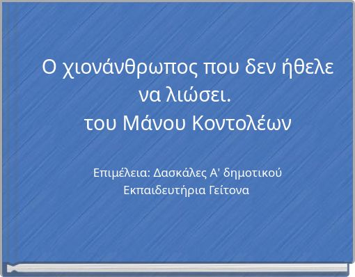 O χιονάνθρωπος που δεν ήθελε να λιώσει. του Μάνου Κοντολέων Επιμέλεια: Δασκάλες Α' δημοτικού Εκπαιδευτήρια Γείτονα