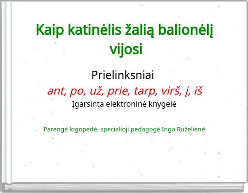Įgarsinta elektroninė knygelė skirta ikimokyklinio/ priešmokyklinio amžiaus vaikų rišliajai kalbai ugdyti, prielinksnių ant, po, už, prie, tarp, virš, į, iš vartojimui įtvirtinti.